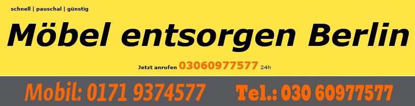 Wir dürchführen Möbel entsorgen Berlin direkt und preiswert anhand. Wir urteilen uns nach Ihren Wünschen und passen uns terminlich an Ihre Vorstellungen an. Wir kommen pünktlich, wirken effizient und zügig. Unsere Möbel entsorgen Berlin steht Ihnen genauso für Haushaltsauflösung, Sperrmüll augenblicklich Entrümpelung Sperrmüllabholung zur Auswahl. Kontaktieren Sie unsere Möbel entsorgen Berlin Möbelentsorgung und gewinnen Sie von unserem verspricht günstigsten Preis!